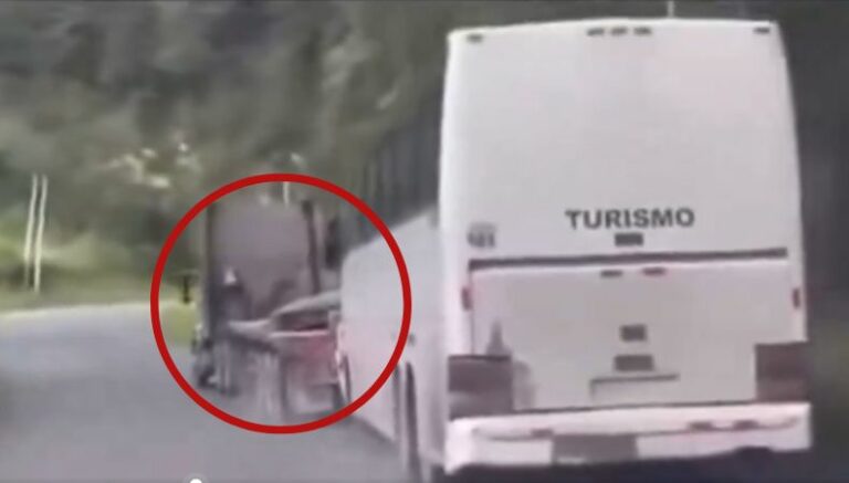 Aquí, a través de un video, se evidencia como el conductor de un bus interurbano que, presuntamente, transportaba migrantes, no llevaba frenos. Ante esa situación, según se aprecia en el video captado por otro conductor, don Elías decidió rebasar a la unidad con su rastra con el fin de utilizar la misma para detener el colectivo.