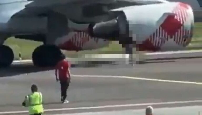 Los testigos relataron que el hombre era perseguido por un agente de seguridad y un operario del aeropuerto. En su intento por escapar, se fue hacia uno de los motores del avión que estaba apagado, golpeó una parte del fuselaje y luego hacia el otro motor que estaba en funcionamiento y se lanzó por lo que fue absorbido.