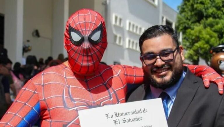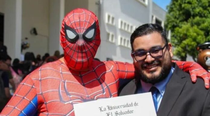 Se trata de Bayron Córdoba, quien se graduó como Doctor en Medicina de la Universidad de El Salvador, y tras su gran logro, recibió un regalo invaluable de parte de su papá. El progenitor de Bayron, apareció en las instalaciones vestido de nada más y nada menos que el famoso héroe arácnido “Spiderman”, por una razón muy especial.