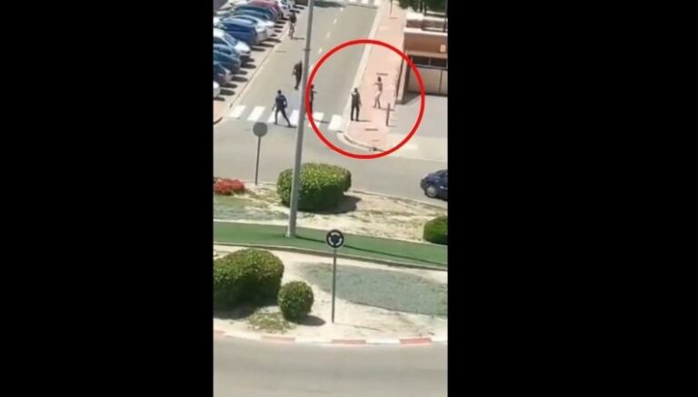 En el video se muestra que el hombre iba semidesnudo y vestido únicamente con unos calzoncillos. Durante su recorrido, portaba un arma blanca con la que amenazaba a las personas que transitaban por la vía pública.