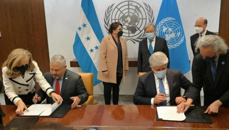 Para este convenio, el canciller de Honduras, Enrique Reina, y el secretario general para Asuntos Políticos de la ONU, Miroslav Jenca, fueron los encargados de sellar el acuerdo en nombre de las dos partes firmantes.