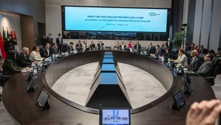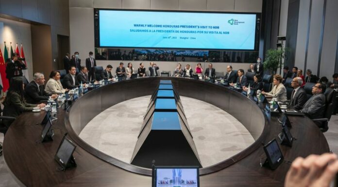 La presidenta de Honduras, Xiomara Castro, pidió formalmente unirse al Nuevo Banco de Desarrollo (NBD). Entidad financiera de los BRICS, Brasil, Rusia, India, China y Sudáfrica durante una reunión que sostuvo en Shanghái con la presidenta de la entidad, la exmandataria brasileña Dilma Rousseff.