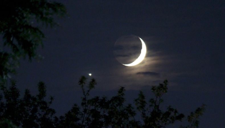 «Mire hacia el oeste para encontrar la Luna como una hermosa y delgada media luna esta tarde después de la puesta del sol, colgando justo debajo de Venus, que brilla intensamente. Mañana por la noche, mire hacia el oeste nuevamente para ver la Luna una vez más, esta vez brillando desde arriba de Venus».