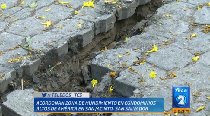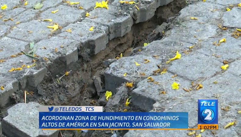 Según los habitantes, después de que se registrara un sismo de magnitud 5.7 grados en el territorio nacional, la calle que colinda con el parqueo de los condominios, ubicados en San Jacinto, se hundió.