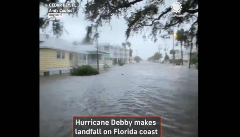 «El huracán Debby tocó tierra cerca de Steinhatchee, Florida, como un huracán de categoría 1 con fuertes vientos y una fuerte marejada ciclónica que provocó inundaciones.»