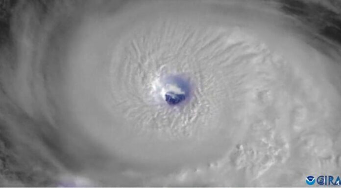 Los cazadores de huracanes de la Fuerza Aérea de Estados Unidos volaron hacia la tormenta e informaron que los datos indicaban el fortalecimiento a categoría 4, por lo que el Centro Nacional de Huracanes (NHC) realizó una actualización a las 7:35 de la mañana (hora local).