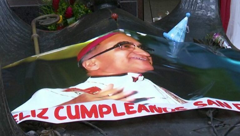 Este día, la Iglesia Católica celebra los 106 años del nacimiento de San Óscar Arnulfo Romero, primer santo salvadoreño. Feligreses llegaron a visitar su cripta, ubicada en la Catedral Metropolitana de San Salvador, dejando flores y globos.