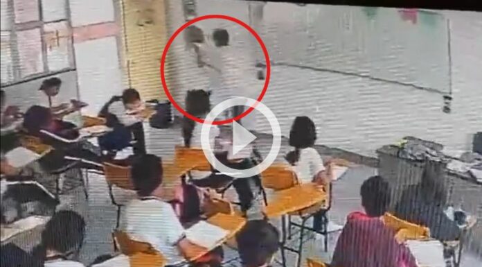 Una cámara de seguridad de un colegio de México captó el momento exacto en el que un alumno atacó a una maestra de español al interior de un aula de clase.