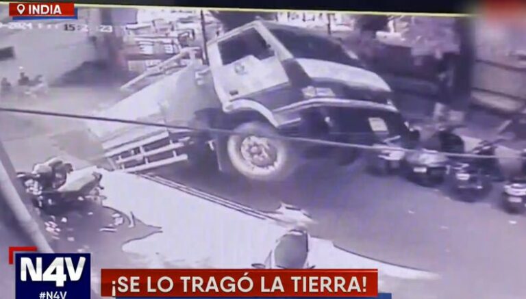 Un impactante suceso se captó en la India, en donde un gran socavón se tragó por completo a un camión en tan solo segundos. El video se captó por medio de cámaras de vigilancia, el cual se viralizó en redes sociales, tras causar preocupación en los usuarios.