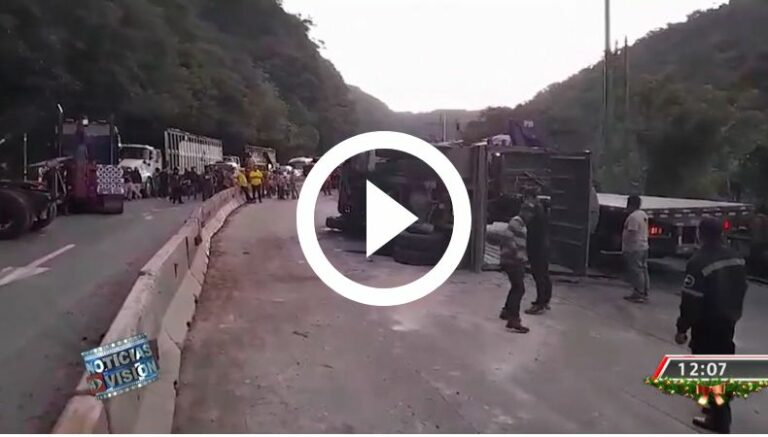 El hecho ocurrió en el km 19, a la altura de La Pedrera, en sentido a Santa Tecla. Las versiones preliminares por parte de la Policía Nacional Civil (PNC), el conductor del transporte de carga perdió el control en una curva de subida, luego pegó contra los separadores y luego volcó.