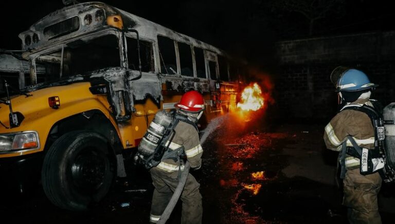 En horas de la madrugada, elementos del Cuerpo de Bomberos, junto a socorristas de Cruz Verde Salvadoreña, extinguieron un incendio que se registró en el punto de buses de la ruta 14, en el distrito de San Martín, San Salvador Este.