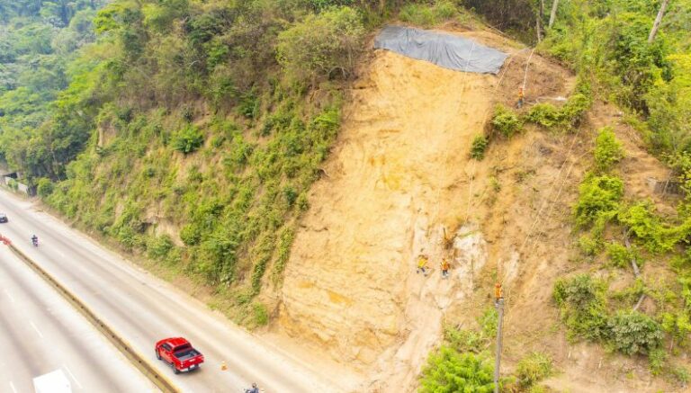 De acuerdo con el FOVIAL, las obras de mitigación se desarrollan en el kilómetro 16.5, en el sentido hacia el occidente del país, a la altura del tramo conocido como ex báscula.