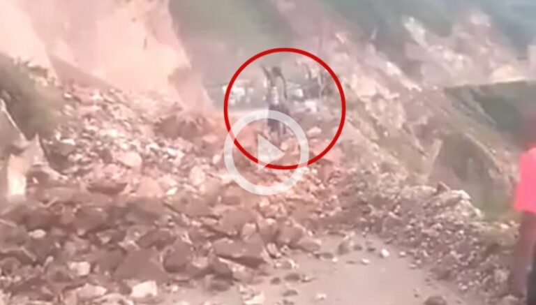 En redes sociales se ha viralizado un video que muestra a la hechicera parada frente a la ladera de la montaña, que se estaba derrumbando.