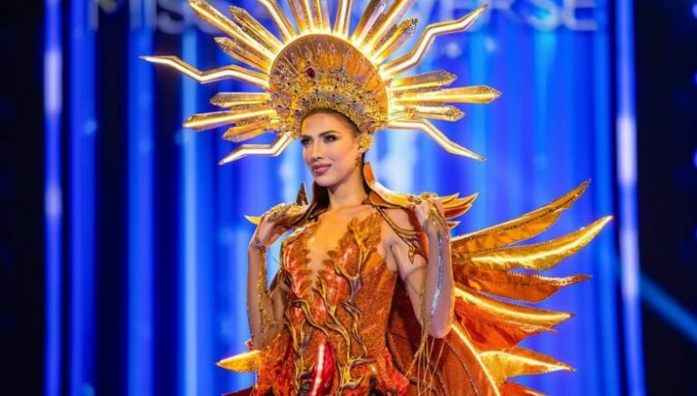 Uno de los trajes que más impresionó al mundo y sobre todo, a los presentes en el recinto y a todos los salvadoreños, fue el de nuestra representante, Isabella García-Manzo. Bajo el concepto “Empoderamiento Volcánico”, que presentaba el renacimiento y nuestros característicos volcanes, como si estuvieran en erupción.