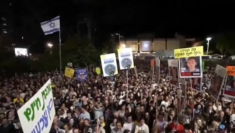 Cientos de personas acudieron a la plaza de rehenes de Tel Aviv, Israel, por el acuerdo de la liberación de los rehenes retenidos en Gaza.