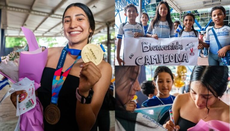Nóchez emergió con el metal dorado colgando de su cuello y rápidamente recibió todo el cariño de los asistentes. Se llevó un ramo, cartas y otras muestras de cariño como abrazos. La joven de 20 años fue agradecida con los presentes, tomándose fotografías, firmando autógrafos y carteles.