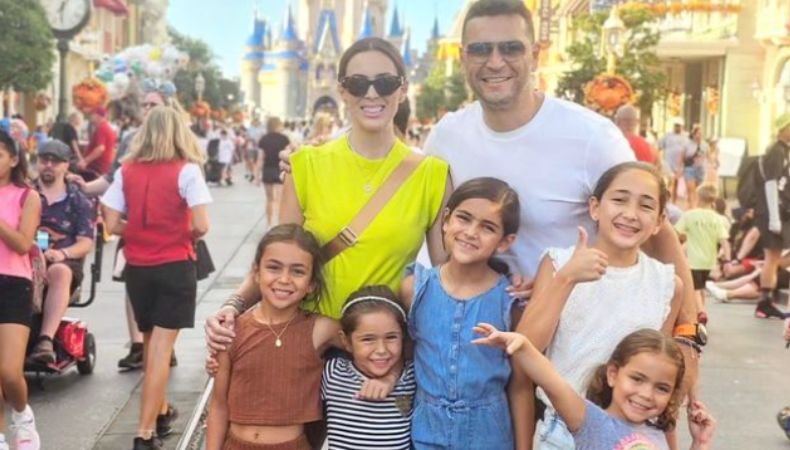 “El lugar más feliz del mundo”, escribió el cónyuge de la originaria de Jalisco, que justamente acompañó la frase con una hermosa postal. En la cual, aparecen acompañados de sus cinco hijas (Jacky, Carolina, Renata, Emilia y Paula) y por supuesto, su amada esposa.