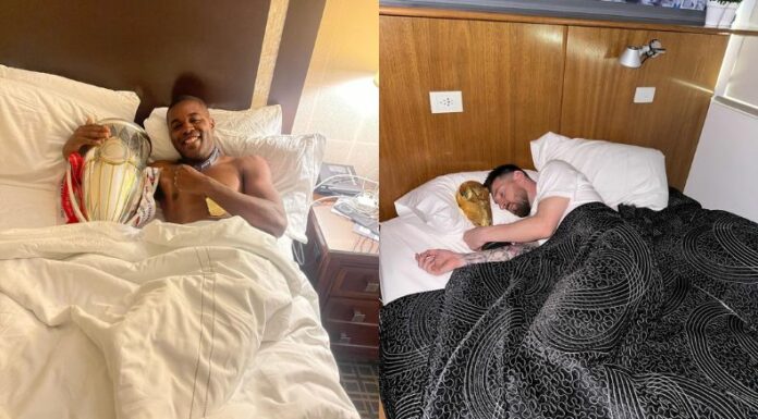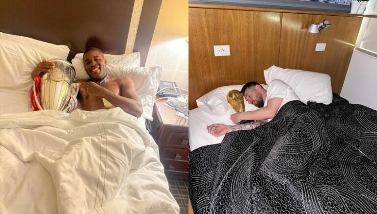 En la primera instantánea, el centroamericano se encuentra en la cama infundiendo una enorme sonrisa con la copa en su regazo. En la segunda, duerme cómodamente, muy bien acompañado. Las mismas recuerdan a las publicadas por el capitán de la Albiceleste tras ganar el Mundial.
