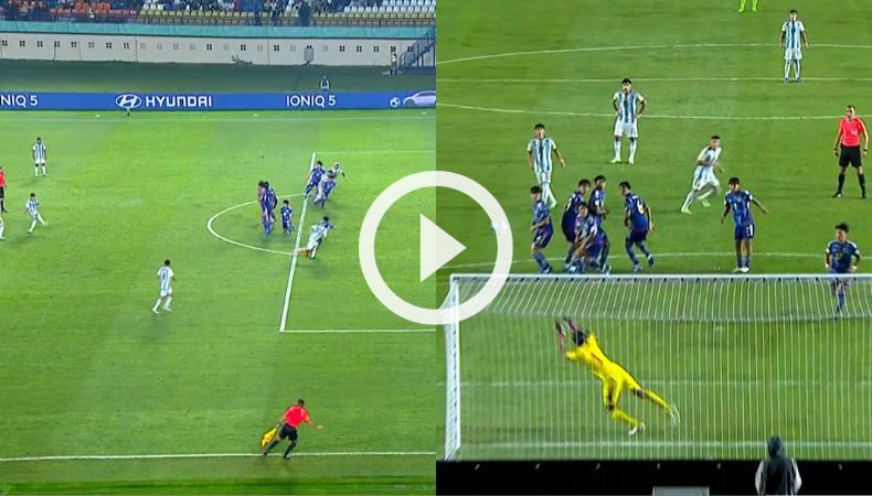 Luego de sufrir una falta lejos del área, el «Diablito», como es conocido, cobró un tiro libre magistral y la mandó justo por la escuadra, emulando el sensacional golpeo de Lionel Messi desde la táctica fija.