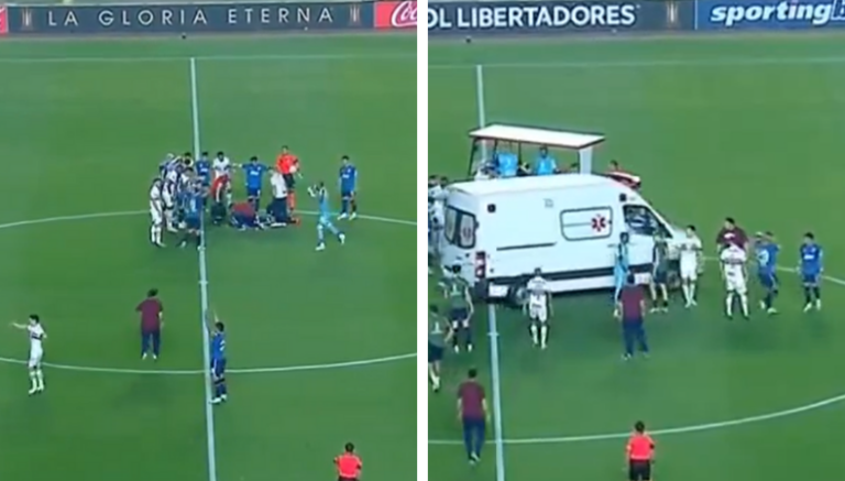 El defensor uruguayo cayó en el círculo central y encendió todas las alarmas. Ambos equipos pidieron la urgente atención médica y fue traslado en ambulancia.