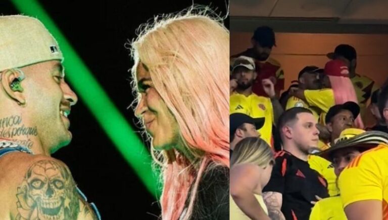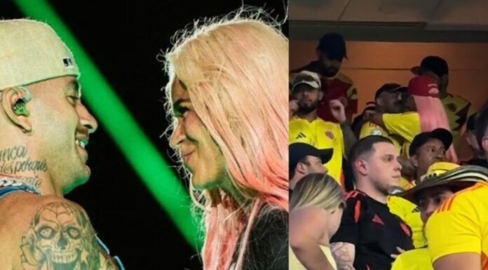 Por su parte, previo al inicio del partido, la intérprete de «TQG», cantó el himno nacional colombiana y además, se ha posicionado en el ojo del huracán tras protagonizar tremendos besos con su novio, mientras se desarrollaba el encuentro deportivo.