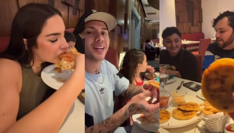 No obstante, Kimberly Loaiza tomó un breve instante para degustar de las deliciosas pupusas salvadoreñas, probándolas al lado de su familia y amigos. Como resultado, quedaron encantados con el sabor del platillo típico de El Salvador.