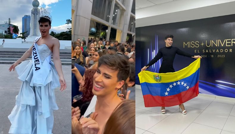El pasado 16 de noviembre, el joven suramericano llegó a El Salvador para asistir a la gala de “Traje Nacional” de Miss Universo 2023- En la velada resaltó su presencia porque llegó con un vestuario al estilo “Reina de Belleza” con la característica banda, la cual tenía impresa el nombre de Venezuela, reflejando su rotundo apoyo a su compatriota y le agregó el toque final, portando una corona.