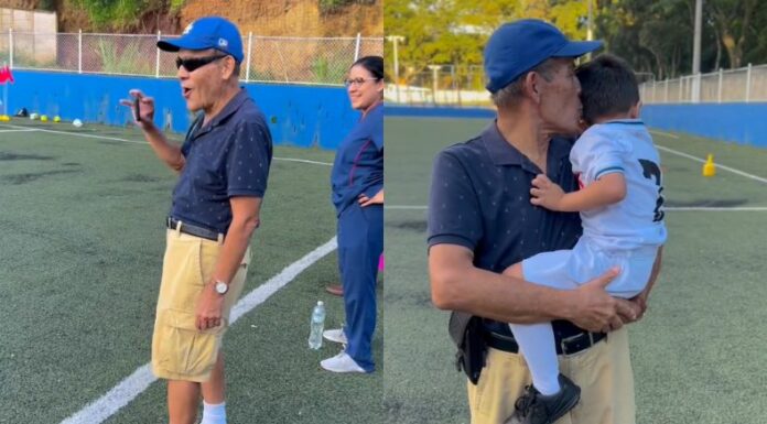 A pocos metros de distancia se encontraba su abuelo, Roberto Vásquez. El veterano fanático aliancista grabó el calentamiento con su celular, mientras su rostro reflejabas un gran orgullo.