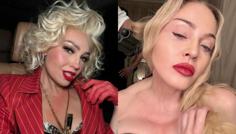 Madonna se encuentra realizando una gira mundial denominada “The Celebration Tour”, la cual está cautivando a millones de fanáticos amantes de su música y entre ellos se encuentra la talentosa cantante mexicana, Thalía, quien mostró en sus redes sociales unas imágenes de su transformación en la reina del pop.