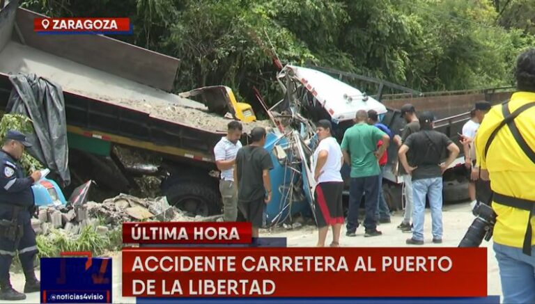 En horas de la mañana de este día, se reportó que dos camiones de carga colisionaron sobre el km 18 de la carretera hacia el puerto de la Libertad, en las cercanías de la residencial Palo Alto en el distrito de Zaragoza, municipio de La Libertad Este.