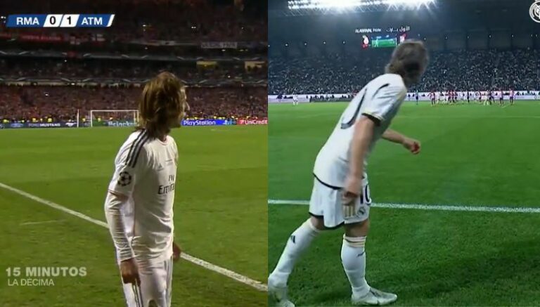 Fue un 24 de mayo de 2014, cuando tuvo lugar el derbi de Madrid por la definición de la Copa de Europa. Los rojiblancos ganaban por la mínima en los últimos compases del compromiso. Sin embargo, Modric se vistió de héroe, mandando un balón hacia el área desde el córner para que Sergio Ramos colocara la paridad con un soberbio cabezazo al 90+3′.