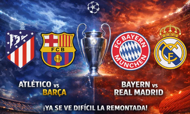 El morbo en los cuartos de final de la Champions League se concentra en las remontadas que buscan el Real Madrid y el Barcelona. Ambos perdieron en la ida como locales y buscan remontar el 1-2 ante Bayern Munich y el 0-2 ante el Atlético de Madrid, respectivamente.