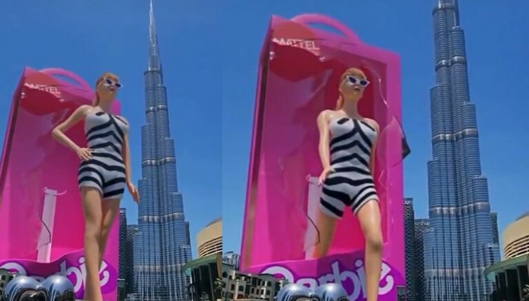Previo al estreno de la película, “Barbie”, la productora Warner Bros, se encargó de llevar a cabo toda una campaña de marketing, que consiste en presentar a la emblemática muñeca de Mattel en 3D, la misma que se encuentra saliendo de una caja y está ubicada precisamente en Burj Khalifa, el rascacielos más alto del mundo.