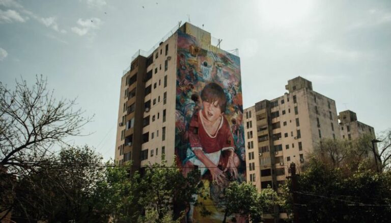 La ciudad de Rosario, en Argentina, está tapizada de guiños a los astros del fútbol mundial Diego Maradona y Lionel Messi. Uno de los murales recientemente creados hace un repaso a la niñez de la «Pulga». No es usual que este ocurra, pues en su mayoría de artes lo plasman como un adulto con sus trofeos conseguidos.