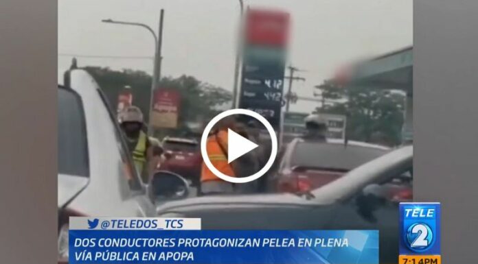 Ayer, jueves, circuló un nuevo video de un acto de intolerancia, en el cual se puede observar cómo dos hombres se encuentran discutiendo. Uno de ellos tiene a su pareja y un palo en la mano, quien, por buscar separarles, recibe un golpe no intencional que la hace caer al suelo. Al parecer, ellos dos venían en el carro color azul.
