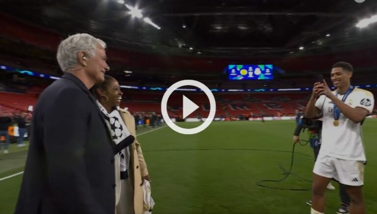 Pero quien obtuvo bastante atención no solo fue Bellingham, porque la madre de este jugador al ver a Mourinho no resistió la idea de capturar ese momento para siempre; y fue el futbolista merengue quien le pidio si se tomaba una foto con su mamá; el estratega accedió y se creó uno de los más curiosos escenarios de la Champions.