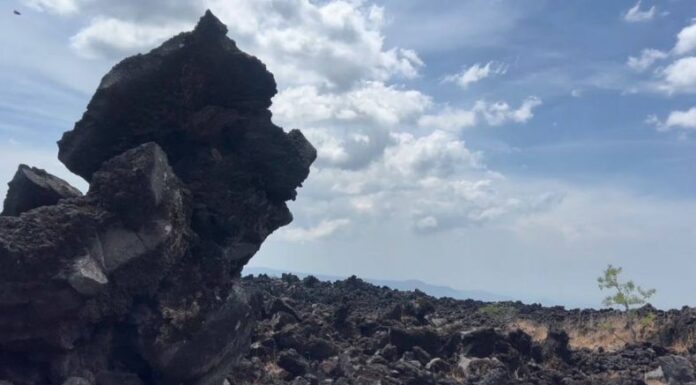 Desde la piedra, se puede contemplar una vista sorprendente, con el majestuoso volcán de Izalco como testigo de su belleza.