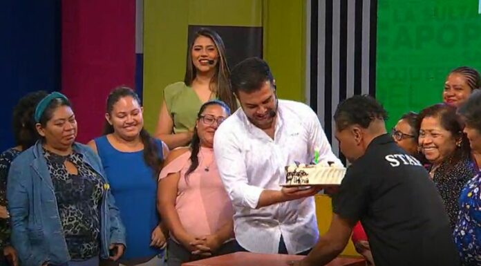 Por tanto, los participantes provenientes de Soyapango, al terminar el programa del pasado lunes 11 de diciembre, se hicieron todos presentes al set de la emisión, para sorprender al conductor con un increíble pastel. En ese instante, el propio Urbina no podía creer lo que estaba presenciando y se observó muy admirado por el detalle que recibió.
