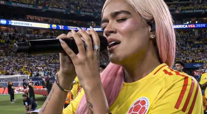 Para interpretar el himno de Colombia, la invitada fue nada más y nada más que la oriunda de Medellín y ganadora de premios Grammy, Karol G, quien con muchísima emoción y sentimientos encontrados, prestó su voz para que la letra de su sagrado himno se escuchara alrededor del Hard Rock Stadium, en Miami, Estados Unidos.Horas antes, los colombianos y el mundo entero se emocionó al saber que la intérprete de “Mañana será bonito”, ya se encontraba en el recinto, ensayando para el gran momento.