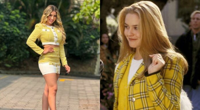 Al verla utilizar este traje, sin duda, trajo muchas referencias de moda que anteriormente se ha visto en películas. Como es el caso del icónico traje amarillo de la actriz, Alicia Silverstone, en las primeras escenas del emblemático film “Clueless” o “Ni idea”, llamada en español.