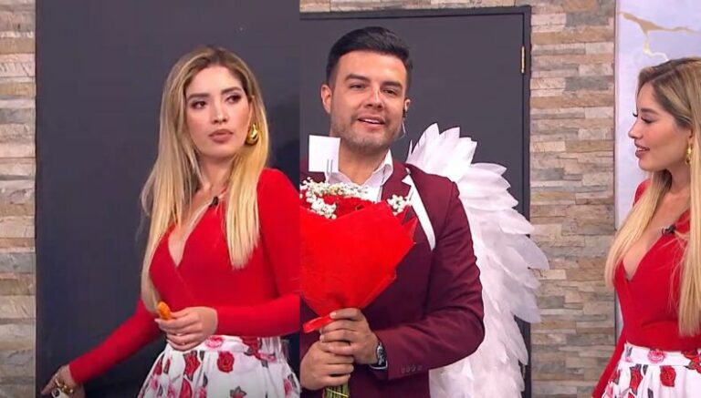 Minutos antes de que terminara el programa, alguien tocó a la puerta del programa matutino, y Larissa fue la encargada de abrirla para recibir a nada más y nada menos que Henry Urbina, vestido de cupido, con un ramo de flores en sus manos.