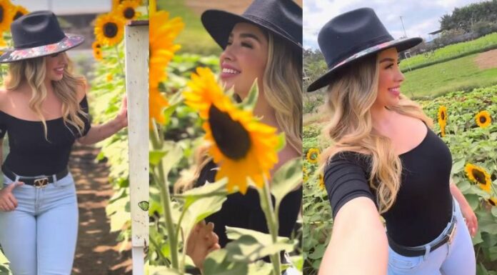 Las imágenes se originaron recientemente a través de dicha plataforma digital. Donde, podemos apreciar a Larissa rodeada de la magia de la plantación de los también conocidos como mirasoles. Este bello lugar se encuentra en San Juan Opico, un vivero llamado «Rainbow Ornamentales», que se ha hecho viral por su jardín de girasoles.