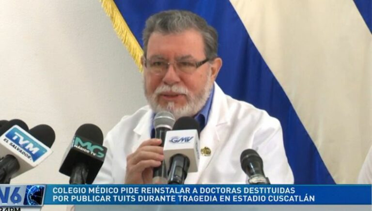 La noche del 20 de mayo, el ministro de Salud, Francisco Alabi, y la directora del Instituto Salvadoreño del Seguro Social (ISSS), Mónica Ayala Guerrero, anunciaron que dieron órdenes de remover a tres médicas del turno que cubrían en hospitales y unidades de salud, por unos comentarios en sus cuentas personales de Twitter. Este día, el Colegio Médico de El Salvador se pronunció al respecto, y brindó su respaldo a las tres profesionales de la salud.