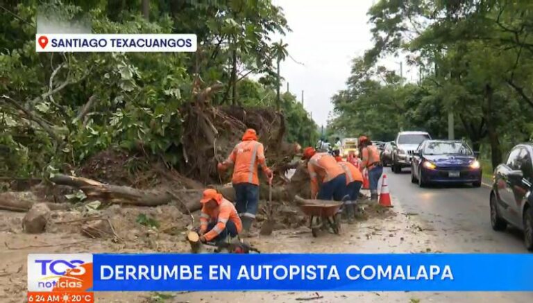 De igual manera, la Policía Nacional Civil, y otros elementos orientan el tráfico en la carretera al Puerto de La Libertad, Santa Tecla, a la altura de Ayagualo, debido a que el derrumbe cayó sobre un vehículo y ha obstaculizado el paso en la zona. El conductor resultó ileso.
