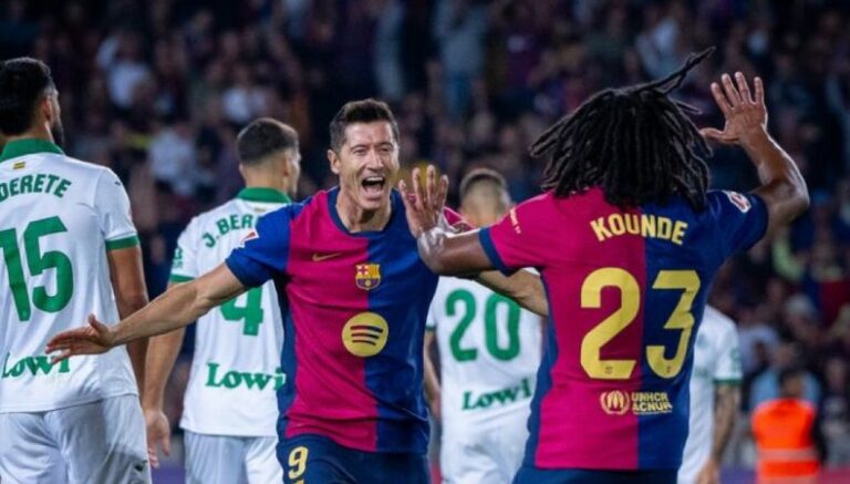 Y es que el Barcelona consiguió romper el empate inicial en el minuto 19, cuando Lewandowski aprovechó el balón que le quedó en el área para golpear la pelotita y hundirla en el fondo de la red.