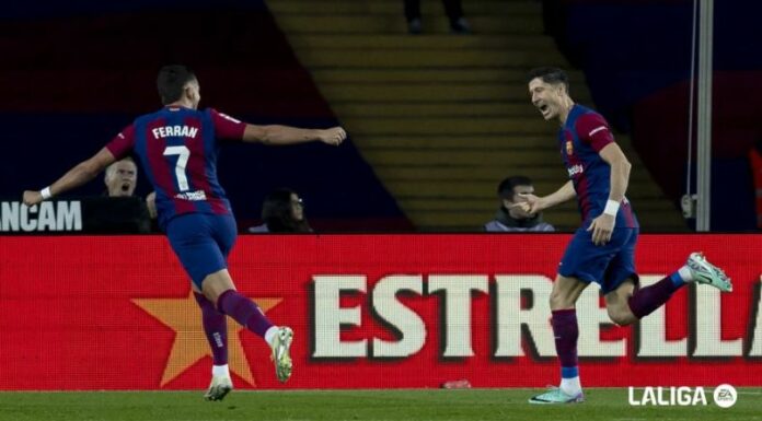 El Barca siguió atacando hasta que se encontró con un penal a su favor tras la caída de Ferran Torres dentro del área. El delantero polaco se paró sobre el machón y la mandó a guardar al minuto 78.