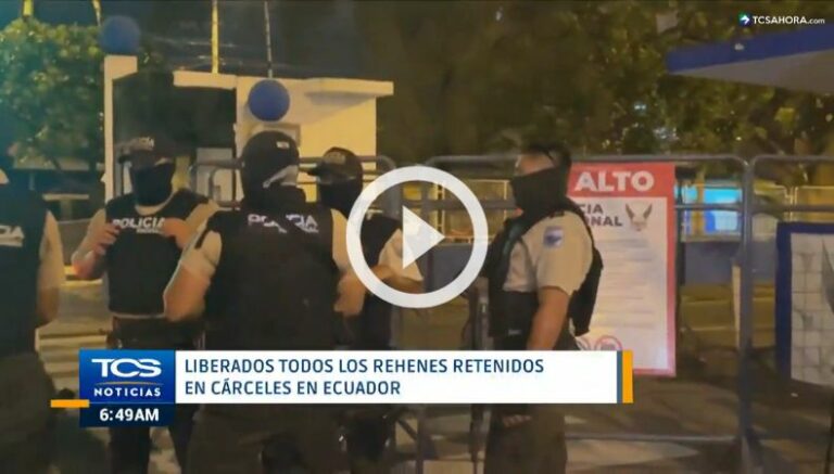 Todos los guardias y funcionarios penitenciarios que habían sido tomados como rehenes en las cárceles de Ecuador fueron liberados el ayer, domingo 14 de enero; entre ellos los 136 anunciados como rehenes más temprano.