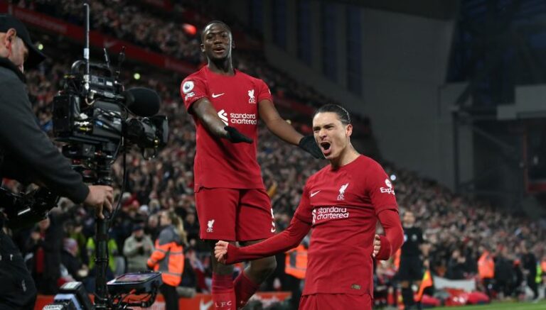 Darwin Núñez amplió la ventaja al cazar un centro proveniente de Elliot al 47′ (2-0).