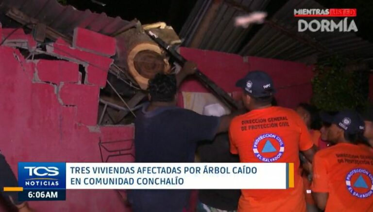 Equipo Táctico Operativo de Protección Civil, junto con la Unidad De Guardavidas y elementos de la Fuerza Armada, realizaron la remoción de un árbol de gran magnitud que afectó a tres viviendas y dos vehículos en colonia La Ostra, Playa Conchalío, La Libertad.