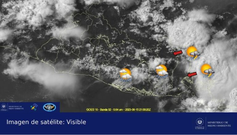 El observatorio de Medio Ambiente y Recursos Naturales (MARN) registra tormentas eléctricas fuertes, acompañadas de ráfagas de viento, en zonas de Chalatenango, Las Vueltas, Concepción Quezaltepeque, Dulce Nombre de María, La Laguna. Lluvias en zonas de Tecoluca, San Vicente, Acajutla, Ahuachapán, Chalchuapa, Colón y AMSS.